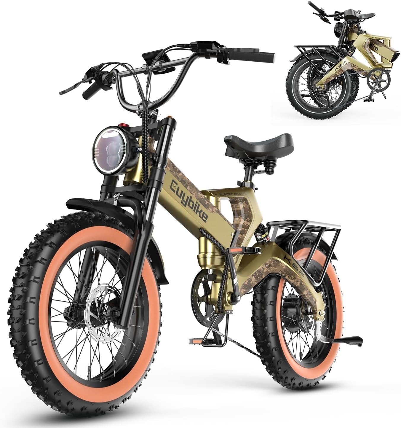 Design: 20″ fat tire foldable frame for portability.