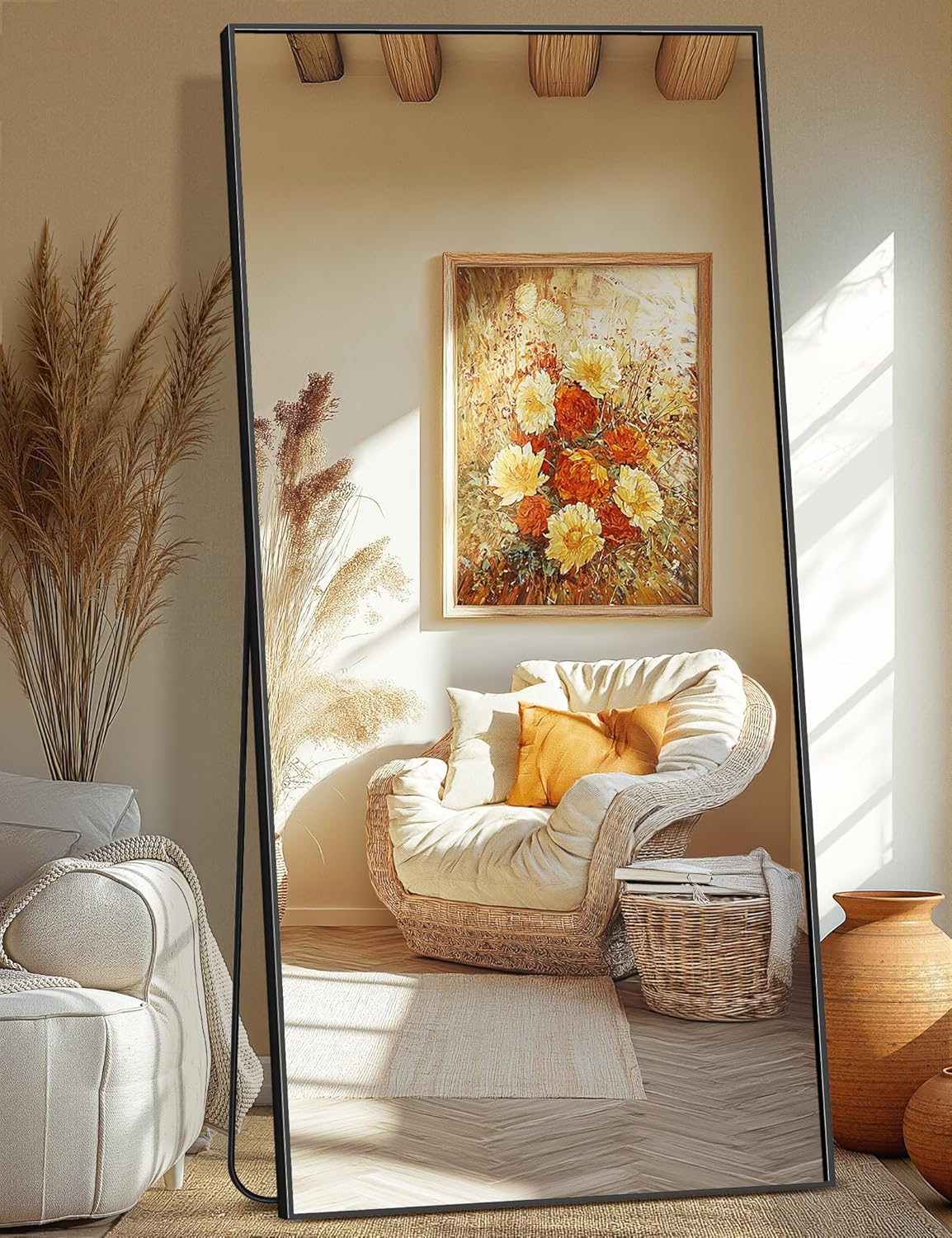 Spacious full-body view provides an expansive reflection for dressing needs.