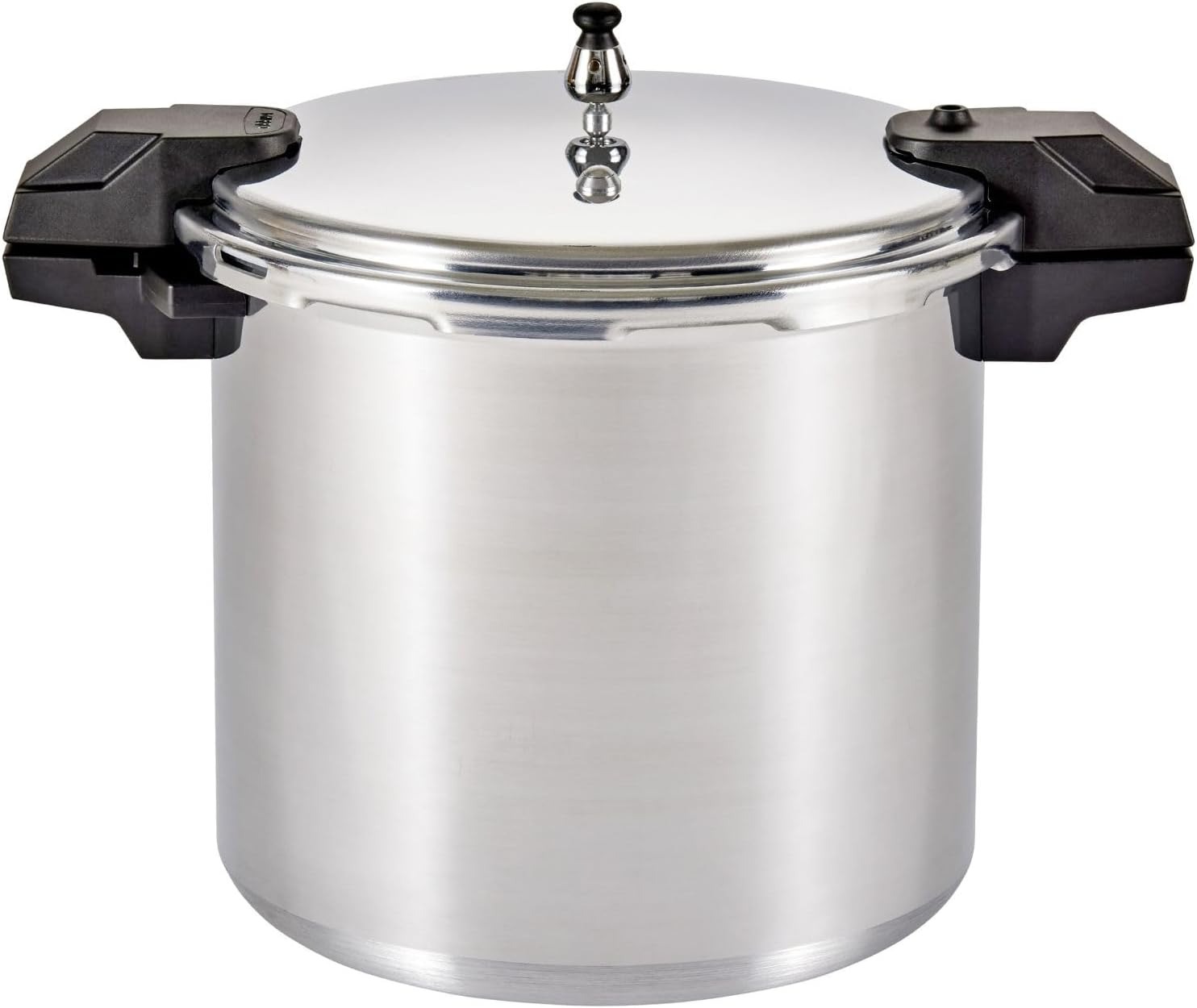Large capacity pressure cooker, ideal for meats, poultry, soups, and desserts.